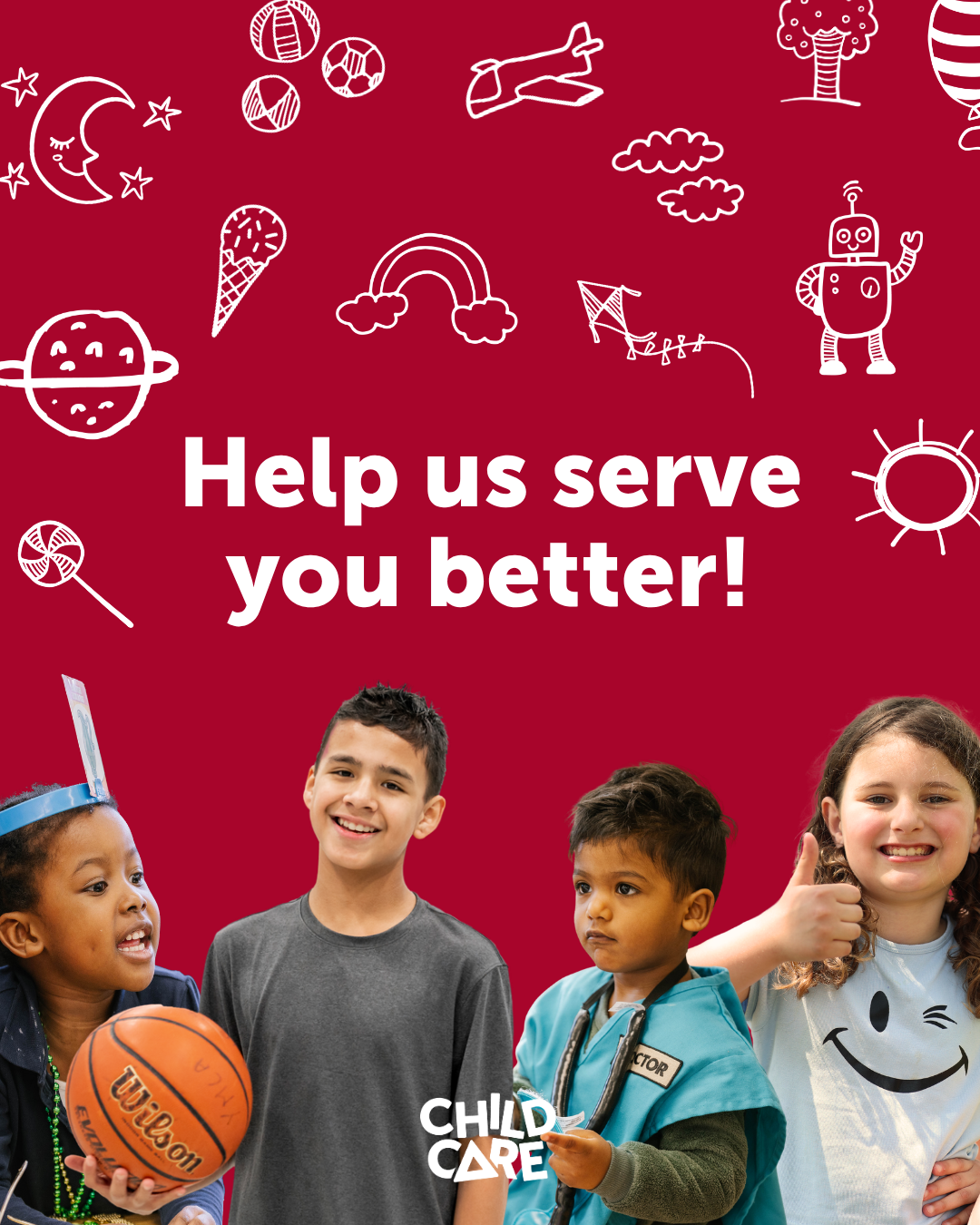 At the YMCA, we want everyone who comes to our Child Care Centres and After School Care to find the support and spaces they need. Complete our 5-minute survey so YMCA continues to provide the best possible experience for your child and our community.